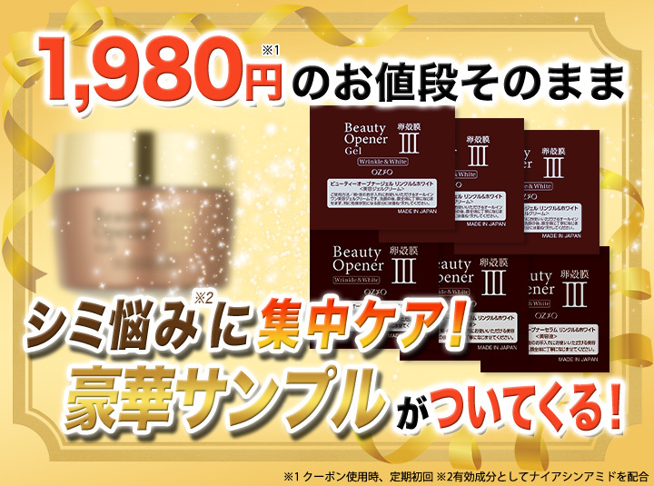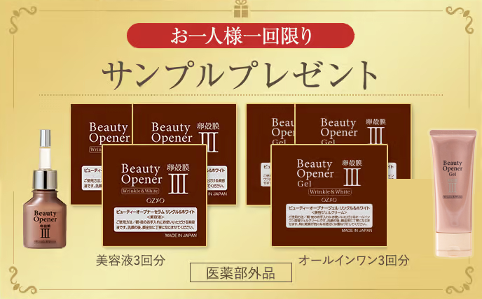 ※2:ビューティーオープナージェル リンクル&ホワイトの効能・効果のこと(ハリを与える、シワ改善、シミ・そばかす予防、肌あれ予防)